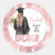 Boné de formatura e vestido preto elegantes, nome do formando de buquê e ano de graduação "DONE", cor-de-rosa e branco, cor-de-rosa e branco, em um brilho falso, parecem fundo.