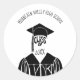 Este adesivo está pronto para ser personalizado com seu nome escolar e seu ano de graduação. Com a ilustração de um boné de formatura e vestido de preto contra um fundo branco, é perfeito para usar como selos de envelope em anúncios de graduação ou para decorar suprimentos de festas para o seu formando.