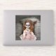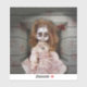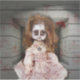 Boneca pálida cara pálida cara pálida pingando sangue manchas velhas de madeira caixa branca vestido Feliz Halloween LGBTQIA orgulho gay dá aparência artística tipo zombie macabra e desconcertante colar pérola tema do horror assombrando o medo negro