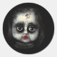 Um adesivo assustador para o Halloween para colocar em praticamente qualquer coisa, este design apresenta uma boneca gótica antiga assustadora com rosto branco sinistro e salpicos de sangue. Seus olhos saltados são assustadores e fantasmagóricos. Esses adesivos são ótimas adições como selos de envelope ou coloque-os em brindes de festa e outros itens para entrar no espírito do Halloween. Eles vêm em diâmetro pequeno de 1 1/2 polegadas ou diâmetro maior de 3 polegadas.