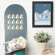 Acentuado com escrita vermelha, uma árvore verde e estrelas amarelas