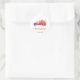 Etiqueta adesiva de Ação de Amizade ou Ação de Graças com carrinho vermelho com abóboras. Ilustração Watercolor de Kristine Lee. Para obter mais informações, visite www.kristineleedesigns.com