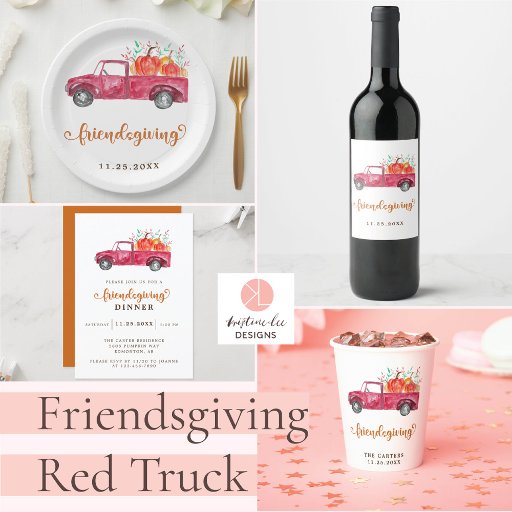 Friendsgiving Red Pickup Truck Pumpkins ScriptCriado por Kristine Lee