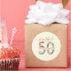 Vinhetas para a 50ª Celebração de Aniversário que inclui a mensagem "Bela" na escrita de caligrafia moderna "at" e, em seguida, o nome da garota de aniversário no meio do número 50 (com letras florais).