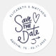 Elegante salve o carimbo de data com um roteiro decorativo manuscrito "salve a data" e um coração bonito no meio. Todas as informações estão rodeadas em caracteres de script elegantes, prontos para personalização fácil.