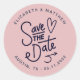 Elegante salve o carimbo de data com um roteiro decorativo manuscrito "salve a data" e um coração bonito no meio. Todas as informações estão rodeadas em caracteres de script elegantes, prontos para personalização fácil.