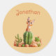 Um bonitinho bonitão se senta sobre um cacto de barril no meio de um pedaço de rocha e cactos.