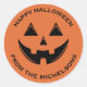 Um bonitinho e Dia de as Bruxas engraçado de abóbora na face da lanterna decora este adesivo. Personalize-o com sua mensagem e seu nome. Divertido por decorar guloseimas de Halloween. Projetado para você pelo Blackberry Boulevard.