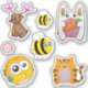 Esta folha de autocolante bonita e colorida tem um total de seis adesivos com animais bonitos de desenho animado: um coelho, um tigre, um pufe, uma abelha (x2) e uma rena. Estes cartunistas e colorido bicho são desenhados à mão com marcadores e lápis coloridos. Uma folha adesiva perfeita e/ou um presente para qualquer viciado em suprimentos de escritório que adora planejar, fazer jornalismo, reservar ou fazer qualquer outro tipo de artesanato com papelaria bonita e colorida.
