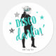 Dê início à festa com este divertido design de adesivo "Disco Darlin'", para toda a equipe da noiva, em prata brilhante e verde-água. Uma silhueta de cowgirl com chapéu prateado cintilante e tipografia "Disco Darlin'" chamativa, é acentuada por estrelas. Adicione a data do seu evento usando o modelo fornecido. Procure por ID925 para ver outros produtos da coleção da moda.