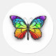 Borboleta monarca realista em todas as cores do arco-íris num fundo branco. Borboleta-arco-íris.
