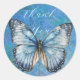 Azul romântico e borboleta bege ouro obrigado com seus adesivos redondos clássicos para presentes elegantes e chicos!
