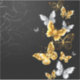 Borboletas Douradas, joias e brancas sobre fundo preto. Borboleta ouro.