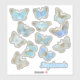 Doze imagens azuis de borboleta com sotaques de ouro brilhantes fazem um adesivo bonito para tantos usos! As borboletas da silhueta estão em várias formas e padrões. Seu texto personalizado em azul correspondente está em um adesivo separado. *Observe que as imagens são impressas e não contêm brilho real.