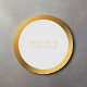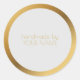 Um adesivo redondo elegante apresenta um centro branco limpo emoldurado por uma borda com efeito dourado ousado e texto personalizável "feito à mão" para selar pacotes, envelopes e embalagens. Ideal para pedidos da Etsy e valorização do cliente, adiciona um toque final polido às embalagens, reforçando o nome e a identidade da marca. O texto pode ser totalmente personalizado. O visual metálico é um efeito dourado impresso.