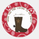 Dê ao seu pequeno cowboy um aniversário que ele nunca esquecerá com este adesivo de bota de cowboy com lenço vermelho colorido e personalizado. Este adesivo redondo é perfeito para decorar um presente, fazer sacolas de lembranças ou qualquer outra coisa que você possa imaginar! Personalize com o nome dele.