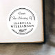 Botânica Redonda da Biblioteca do Vinheta-Cartão. Este adesivo de livro redondo apresenta uma letra "Da Biblioteca de" na escrita com o seu nome na tipografia serif e um elemento de folha botânica abaixo.