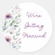 Uma elegante ameixa de água flores roxas com folhagem verde-sábio e azul empoeirada e design floral, vamos casar com adesivos para selar envelopes de casamento.