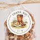 Espalhe gratidão e alegria no perfeito 'Botas de Cowboy Country Ocidental Casamento Rústico Adesivo Redondo Clássico!'. O toque final perfeito para expressar sua apreciação. Compre agora e adicione um toque de doçura aos seus presentes de agradecimento!