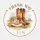 Espalhe gratidão e alegria no perfeito 'Botas de Cowboy Western Country Adesivo Redondo Clássico Rústico de Casamento!' O toque final perfeito para expressar sua gratidão. Compre agora e adicione um toque de doçura aos seus presentes de agradecimento!