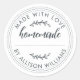Produto assado ou adesivo de enlatar em casa, russo, moderno e simples, com texto caseiro, feito com amor e seu nome em caligrafia e tipografia manuscritas e fora do preto, em um fundo branco. Basta adicionar seu nome ao rótulo. Escreva os nomes dos produtos nos adesivos quando os seus produtos estiverem prontos. Desenvolvido exclusivamente para você pelo Happy Dolphin Studio!