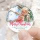 Adicione um toque de acabamento de na moda aos presentes de Natal, cartões de natal e favoritos para festas com adesivos fotoredondos personalizados e coloridos modernos. A imagem e todos os textos neste modelo são simples de personalizar para selagens de envelopes ou etiquetas de presentes. O roteiro pode ser Feliz Natal, Felizes Feriados, Saudações de Sábios, ou Feliz ano novo. Como opção, altere a saudação para seu nome e use o restante para seu endereço de devolução ou mensagem especial. O brilhante design verde e vermelho de amora apresenta caligrafia ousada de guião, tipografia clássica elegante e uma foto da sua escolha. A família e os amigos adorarão a linda e única adição que estes autocolantes fazem às comemorações de férias. Feliz Natal e Feliz ano novo!