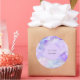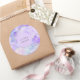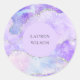 Fundo brilhante em vários tons de roxo e azul com um círculo lavanda contendo suas informações personalizadas. Confira nossa loja para mais opções de adesivos ou branding para pequenas empresas.