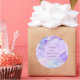 Fundo brilhante em vários tons de roxo e azul com um círculo lavanda contendo suas informações personalizadas. Confira nossa loja para mais opções de adesivos ou marca de pequenas empresas.