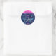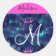 Menina e glam brilham brilhando cor-de-rosa-quente, roxo, turquesa aqua, brilho verde e azul brilha as coroas/ tiaras princesa de sereia nome monograma e adesivo redondo clássico inicial. Seu nome personalizado é escrito em preto com um fundo rosa-quente, e seu monograma personalizado é escrito em branco com um elegante script escrito à mão. Um aniversário perfeito ou presente de Natal!