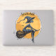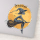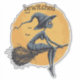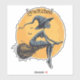 Este é um adesivo bonitinho de halloween que mostra uma bruxa voando sobre a lua de cheio em sua vassoura. Você pode personalizar o texto padrão "gravado".