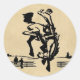 Cavalo e cavaleiro durante um evento de Saddle Bronc Rodeo ocidental, ou apenas um cowboy quebrando um cavalo no coral enquanto as mãos de trabalho observavam a cerca.