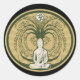 Este maravilhoso design budista mostra Siddhartha Gautama sentado sob o Bodhi, onde ele alcançou esclarecimento e se tornou o Buda. Forma oval ampla em cores verdes e bronzeadas com um símbolo Om no topo da árvore. Camisas e presentes originais e pacíficos de Buda!