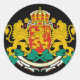 Casaco da Bulgária. O casaco de armas da Bulgária consiste num leão ouro coroado, galopado sobre um escudo vermelho escuro; acima do escudo, encontra-se a coroa histórica búlgara. O escudo é apoiado por dois leões ouros coroados de acampamento; abaixo do escudo, há um compartimento na forma de galhos de carvalho e bandas brancas com o lema nacional "Unidade dá poder" inscrito neles.