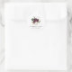 Flores brancas de marfim e roxas de ameixa com buquê de folhagem verde, autocolantes personalizados, com duas linhas de modelo para texto personalizado. A cor de fundo, mostrada em branco, pode ser personalizada.
