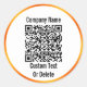 Você pode substituir a imagem de exibição pelo arquivo do seu código QR. Há linhas de texto de exibição em preto que você pode editar para mostrar uma mensagem personalizada. Estes autocolantes têm texto preto num círculo branco. A borda do gradiente laranja é uma renderização artística.