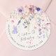 Add a sweet and whimsical touch to your bridal shower favors, packaging, or decorations with this round sticker design, perfect for a butterfly-themed celebration. The layout features delicate watercolor wildflowers and greenery with multiple pink and purple butterflies fluttering across the design. The color palette includes blush pinks, dusty rose, lilac, lavender, violet, and soft greens—ideal for a dreamy, garden-inspired bridal shower.