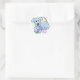Adoráveis adesivos de cachorro kawaii! Um filhote de desenho azul está mastigando alegremente um osso e balançando sua cauda. O desenho bonito para amantes de animais de estimação tem um fundo bolinhas com um arco-íris de cores. Produtos coloridos são perfeitos para adultos ou crianças!
