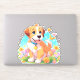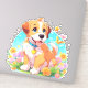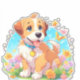 Um adesivo com uma fotografia de um filhote fofo sentado entre as flores. Ele parece muito feliz por estar cercado por flores e borboletas. O presente perfeito para dar àqueles que amam cachorros. Contém conteúdo generativo.