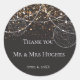 Cordas de luzes Douradas confetti Obrigado Stickers, lâmpadas e tons grandes sobre um fundo de Confetti Dourado, cordas brancas com corações e círculos brancos. Um design elegante para um casamento único e espumante. itens correspondentes disponíveis em lojas.