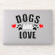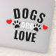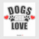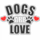 Desenho de pegadas de patas de cães e corações vermelhos.