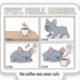 Um design humorístico em estilo de quadrinhos mostrando como um café tranquilo pela manhã se transforma em caos graças a um Francês ressonando. Perfeito para amantes de cães e fãs de café.