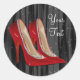 Elegante adesivos de calçado de salto alto vermelho. Estes belos adesivos de alto salto vermelho são facilmente personalizados para o seu evento adicionando texto, estilo de fonte, tamanho de fonte e cor e texto. Observe que todos os adesivos, cartões e designs de convite que você encontrará no Zazzle são gráficos impressos sem joias reais, arcos, levantados, gravados, ou peças ou peças adicionadas.