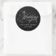 Um adesivo de casamento elegante em preto e prata com sotaques de texto de caligrafia. O estilo simples e saboroso funciona bem para casamentos em todas as estações. Personalize com os nomes da noiva e do noivo e a data do casamento ou outro texto desejado. Estes adesivos redondos estão disponíveis em 2 tamanhos diferentes. Convites de casamento, cartões RSVP e outros produtos de casamento estão disponíveis nesta design.