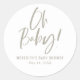 Simples Caligrafia Gênero O adesivo neutro do Chá de fraldas apresenta uma caligrafia divertida e moderna em cores ousadas e sólidas.