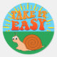 A mensagem do caracol é: calma. Personagem de desenho animado original com texto de rajada de sol e entalhe. Autocolantes personalizados. Ideia do presente.