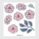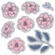 Flores cor-de-rosa ilustradas detalhadamente de Camellia japonica 'Yours Verdadeiramente'. Este conjunto de adesivos pode ser usado para revistas de arte e lixo, planejadores e diários. O brilho dourado usado nesse impressão é simulado, não é uma relíquia real. Arte original de Marketa Stengl.