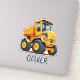 Adesivo de design personalizado de caminhão de construção moderno e fofo na cor amarela.