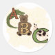 A é para o jacaré, B para o urso e C para a vaca numa design do alfabeto ABC envelhecida em Camisetas ABC, canecas, cartões, adesivos, sacos de tota, botões, adesivos e outros designs do alfabeto.