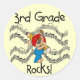 Um filhote com um boné de baseball e um lápis amarelo gigante, notas musicais e texto que lê "Rochas do 3º ano!" em t-shirts do 3º ano, capuzes, canecas, cartões, adesivos e muito mais, perfeito para estudantes e professores do 3º ano!