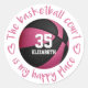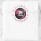 Estes adesivos giros de basquete redondos de 3 polegadas apresentam a frase tipográfica, "A quadra de basquete é meu lugar feliz" e dois contornos cardíacos em rosa cercando uma bola de basquete rosa e preta - personalize com o nome do atleta e o número de camisa - por katz_d_zynes